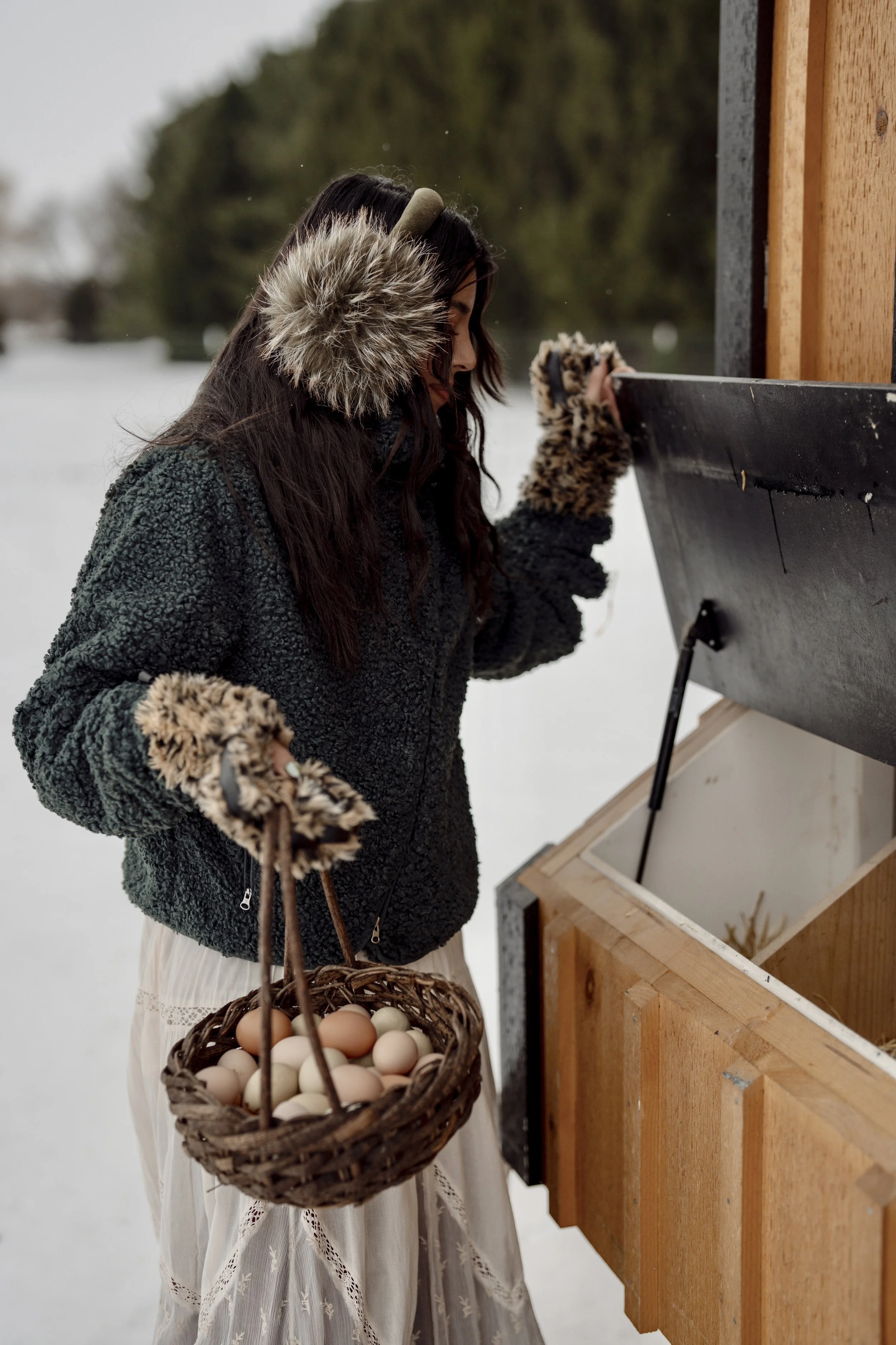 Egg production slows significantly during winter due to reduced daylight, but the hens continue to do what they do best: scratch, forage, and bring life to the farm even on the coldest days.